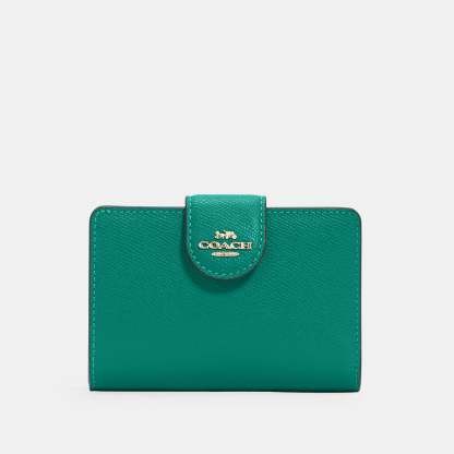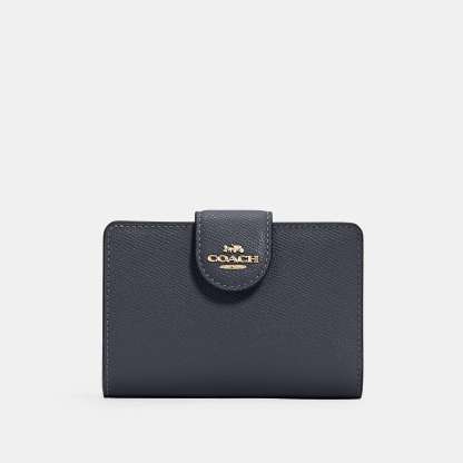 Crossgrain leather Seven credit card slots Bill compartment ID window Snap closure Zip coin pocket 5 (L) x 3 1/2 (H) x 1/2 (W) Style No. 6390 | Outlet Medium Corner Zip Wallet - Blue