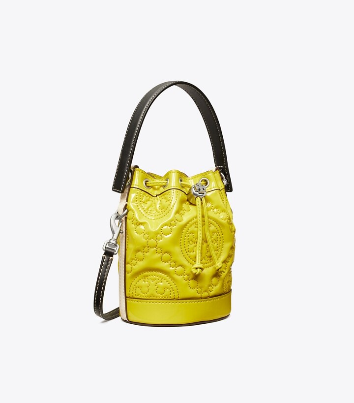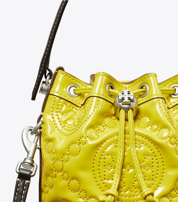 Mini T Monogram Embroidered Patent Bucket Bag