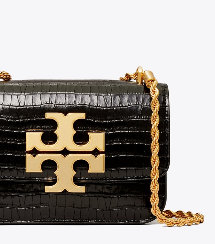 Richly textured embossed leather contrasted with smooth hardware, against the clean lines of a box bag. A jewel of craftsmanship, the Small Eleanor Bag is designed to carry with ease. Wear the twisted rope chain over the shoulder or crossbody.