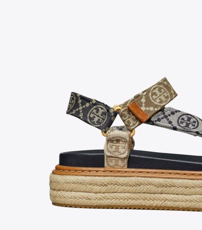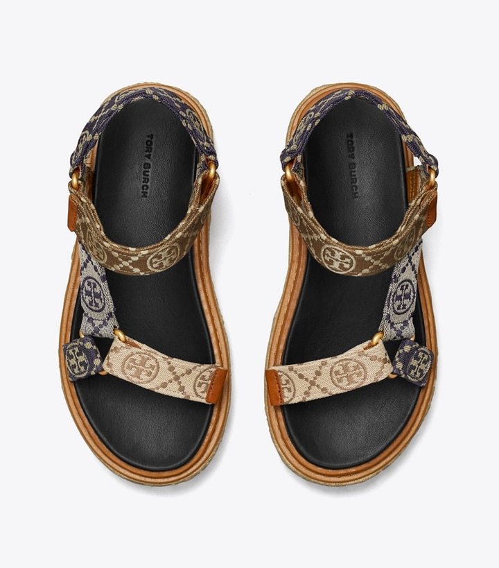 Our Sport Sandal is crafted in multi-colored woven jacquard with Velcro straps, set on a woven jute platform. Wear with the season's caftans and floor-grazing dresses.